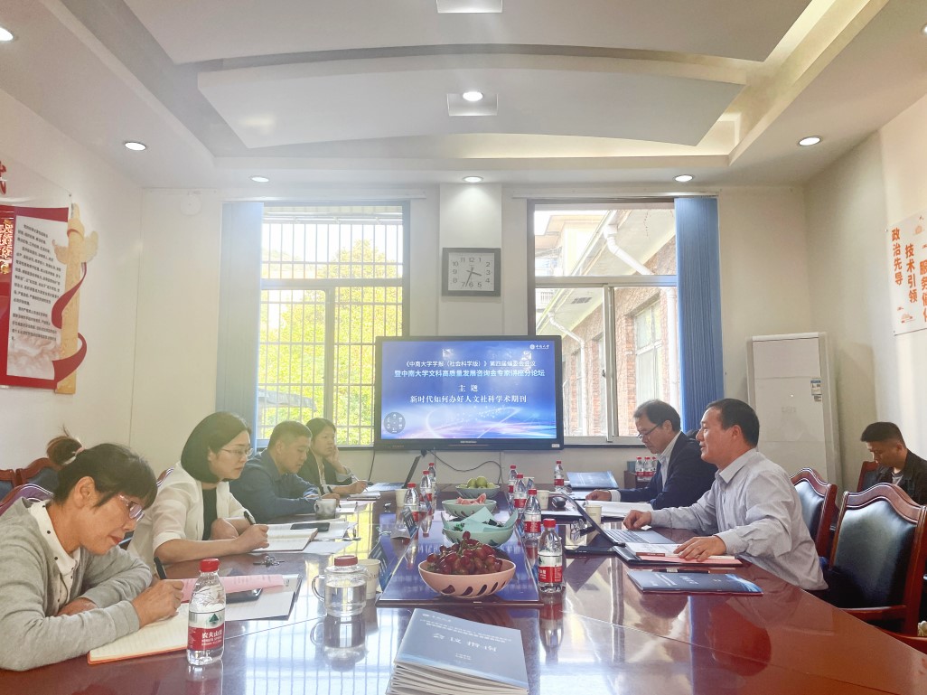 2023年10月22日下午,《中南大学学报(社会科学版)》第四届编委会暨中南大学文科高质量发展咨询会出版社分会场会议在出版社3楼会议室举行。会议主题是“新时代如何办好人文社科学术期刊”,全国高等学校文科学报研究会理事长、《北京大学学报(哲学社会科学版)》常务副主编刘曙光,中国人民大学书报资料中心总编辑高自龙分别作了“新时代我国高校社科学术期刊的高质量发展”“学术热点与选题规律——基于2012—2022年‘中国十大学术热点’评选”的主题报告。中南大学出版社副社长黄飞,中南大学出版社副社长、《中南大学学报(社会科学版)》执行副主编谭晓萍,《财务与金融》《民间法》《经济法论丛》《外语与翻译》等社科期刊代表,《中南大学学报(社会科学版)》全体编辑出席会议,会议由谭晓萍副社长主持。